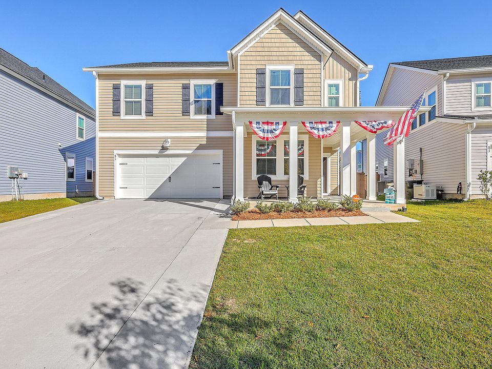 As you approach you will notice the wrap-around porch and 2-car garage. Once inside you will find the beautiful LVP flooring throughout the main living area. The flex room just off the foyer can be a dining room, office or second family room. It has a ceiling fan. As you make your way to the back of the home you will find an open floor plan. The kitchen has quartz countertops, a tile backsplash and a large sink. The 42-inch white shaker-style cabinets have crown molding and above display area. The lighting is recessed. The pantry and island provide plenty of storage. The stainless appliances include a dishwasher, a built-in microwave and a gas range. The dining area is between the kitchen and the family room. Multiple windows in the family room and the sliding glass door in the diningarea provide lots of natural light. The family room has a ceiling fan. The half bathroom on this floor has a pedestal sink. Upstairs you will find a loft with a ceiling fan. It is currently being used as a game area. It would make a great play area. The huge primary bedroom has a ceiling fan and a large walk-in closet. The primary bathroom has a dual sink vanity and a soaking tub. The walk-in shower is tiled. The second bedroom has chair railing, a ceiling fan and a walk-in closet. The third bedroom has a ceiling fan. The fourth bedroom has a ceiling fan and a walk-in closet. The hall bathroom has tile flooring and a tub/shower combo. The vanity has extra counter space. The laundry room has tile flooring and storage cabinets. The screen porch off the back of the home is 30x12. The 2 ceiling fans will give you a nice breeze while enjoying the outdoors. The extra 9x14 concrete patio is ready for your grilling events. It would also make a great pad for a shed. The privacy fence makes it great for family pets. Limehouse Village has an in-ground pool and a play park with a picnic area. The Gazebo is a great place for visiting with friends.