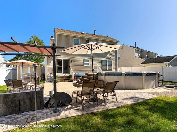 Beautiful colonial with upgraded flooring throughout whole house Granite counter tops recessed lighting brand new stove .French doors leading into the amazing living room with cathedral ceilings and a cozy fireplace also laundry den full bath on first floor on second floor spacious master bedroom with direct access to full bath and two additional bedrooms enjoy your summers in your spacious fenced in backyard with an above ground pool front of the house has double wide paver driveway vinyl fence newer roof newer furnace and AC 2016 house has a who;e house generator hooked direct to power the whole house except AC in case of power loss make this beautiful home your home