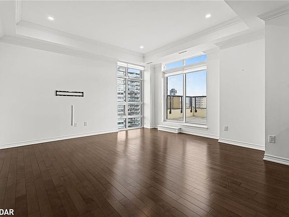Experience luxury living in this rare, stunning penthouse condominium, complete with two prime parking spaces and an expansive 430 sq ft private terrace. Nestled in the elegant city square condominiums, this bright and spacious unit is bathed in natural light, thanks to floor-to-ceiling windows. The warm maple hardwood floors add a touch of sophistication, while the open-concept kitchen, equipped with stainless steel appliances, offers modern convenience. Geothermal heating and cooling throughout. The master bedroom is a true retreat, featuring a generous walk-in closet with custom built-ins. Step out onto your exclusive terrace, accessible from both the great room and the master bedroom, and enjoy breathtaking panoramic views of the city skyline- a perfect setting for entertaining or relaxing. Located in the heart of the desirable Durand neighbourhood, you're just a short stroll from shops, restaurants, parks, hospitals, and Go Transit. Access to two gyms, a media room, a hospitality room & private bike storage.