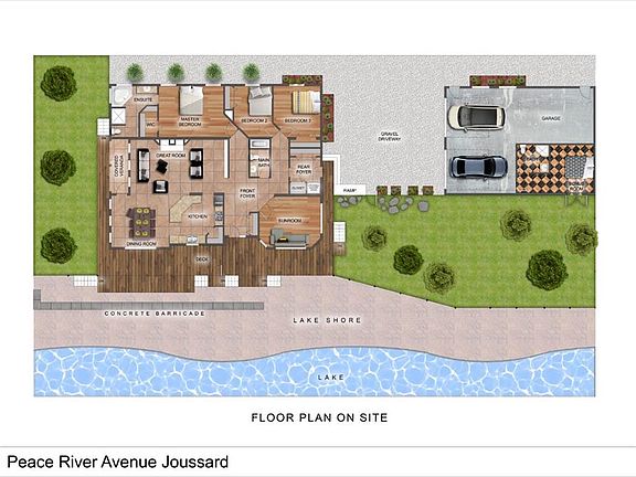 A cottage in Joussard, Alberta, inviting you to enjoy a year-round lakefront lifestyle. This 2009-built home is perfectly designed for lakeside living, offering both comfort and incredible functionality. The main house features three bedrooms and two bathrooms, but the standout feature is the expansive, heated 28' x 40' garage. This incredible space includes a versatile bonus bedroom and bathroom, accessible through French doors to its own fenced, private yard with direct access to the lake—ideal for guests, extended family, or a home business. With room for a pontoon boat or RV, the garage is a dream come true for outdoor enthusiasts. A multi-level, wrap-around deck with glass panels provides breathtaking views of the lake, with stairs leading down to a rocky/sandy beach. The yard is thoughtfully laid out with multiple fenced areas, including the one connected to the garage bedroom for ultimate privacy, and another east-facing fenced yard wrapping around to the front of the home. Enjoy the multiple raised south-facing gardens placed strategically around the driveway and front of the home. Inside, the home is oriented to maximize the stunning lake views. An east-facing entrance serves as a practical mudroom with a stacking washer/dryer, while the sunroom, living room, and open-concept kitchen/dining area all overlook the water. The living room is warmed by a gas fireplace and features custom bookshelves, creating a cozy atmosphere. The primary bedroom is , complete with a walk-in closet and an ensuite boasting a soaking tub and a stand-up shower. To book your personalized viewing call, email or text your Realtor today!