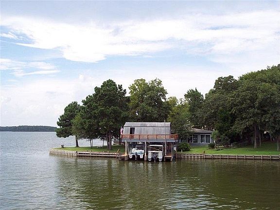 EXTREMELY UNIQUE WATERFRONT HOME LOCATED ON POINT!! LAKEFRONT HOME WITH GLASS ENCLOSURE TO CAPTURE THE FASCINATING VIEWS FROM THE MANY VANTAGE POINTS OF THIS LOCATION. HOME FEATURES: GLASS SUNROOM ENCLOSURE WITH SUNKEN HOT TUB AND TWO ROCK FOUNTAINS VERY OPEN CONCEPT WITH LIVING, DINING AND KITCHEN AREA SURROUNDING A CENTER STONE FIREPLACE EXTRA LARGE GAMEROOM THREE BEDROOMS (TWO ARE SET UP AS MASTER SUITES) TWO AND ONE-HALF BATHS DOUBLE CAR GARAGE LOTS OF DECKING WALK WAY SURROUND THE HOUSE VINYL BULKHEADING SUPER BOATHOUSE WITH SLEEPING QUARTERS ABOVE OUTDOOR KITCHEN WITH BUILT-INS FABULOUS HOME ON VERY UNUSUAL PENINSULA SHAPED LOT 425,000