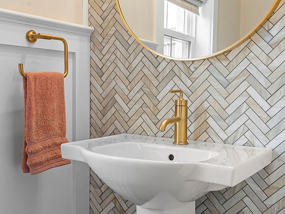 Spa-inspired bath retreatColonial trimFirst-floor primary suiteGrand entry foyerElegant crown moldingDedicated laundry roomLarge center island