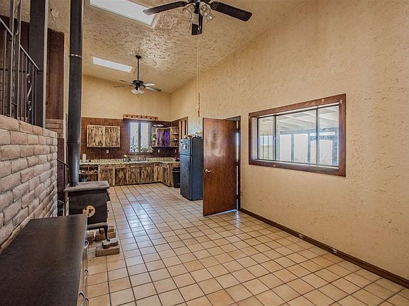 81 Southend Rd #A: 2,108 sq ft multi-level home on 7.7 acres. Older barn, fully fenced, with well (working irrigation that may need repairs) for a future orchard. Enter screened front porch to front door that leads to kitchen & dining area. Stairs straight ahead to upper living area & bedroom with en-suite bath and closet. Downstairs to den/living area used as a bedroom presently. Beyond kitchen is a bedroom with full bath. Wood burning stove. Propane, well, septic. Horse property. House needs improvements.