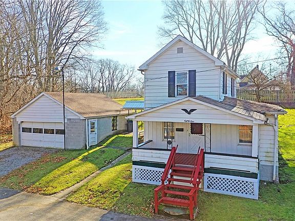 An excellent investment opportunity or a potential packed creative canvas for your new home, this move-in-ready Hubbard residence deserves a closer look! The two-story structure sits at the bottom of a quiet, one-way street, ensuring low noise and traffic. Located just minutes from bustling downtown where you can take advantage of restaurants and shopping alike. Spanning a sizeable lot, the property boasts large, detached garage with covered walkway and a prominent front porch with bold red stairs that quickly grab your attention. Inside, the three-bedroom layout begins with a formidable living room that leads into the central kitchen. Around the corner, a first-floor master bedroom brings built in cabinets and ample closet space. The kitchen itself continues with rich woodwork and long running countertops. Nearby, the side entry is located near a full bath and the second story stairway. Up the winding staircase, a pair of inviting loft bedrooms fill out the hallway. Below a full basement include walk out access.