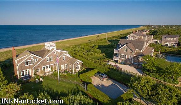 Spectacular oceanfront compound with a four bedroom main house on the Atlantic and pristine Squam beach. The substantial guest house is sited over 300 feet from the main residence for privacy and overlooks the pool, spa and pergola covered dining area. Beautiful approach from Squam Road with native meadow on the left and guest house and two car garage to the right. Driveway winds along an allee of Cleveland Select pear trees to the main house and a hidden footpath connects the two structures. The houses are custom-built and have been meticulously maintained. The property has nearly two acres, a private stair to the beach and beautiful views of sunrise and sunset. Privacy and over 8,000 s.f. of effective living area ensure the perfect island oasis.