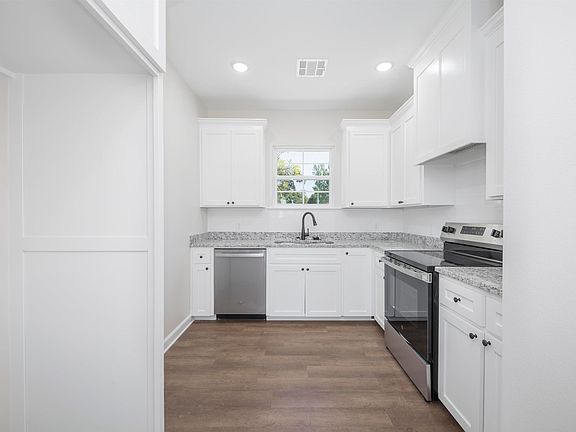 Generously sized pantryTwo covered patio areasModern white cabinetrySleek granite countertopsStylish black accents
