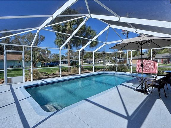 Fabulous solar heated screened salt pool home on .47 acres, fenced, plus detached 30x24 garage, plus 266 s.f. workshop. This split bedroom plan features 3 bedrooms, 2 bathrooms, eat in kitchen with pass-through window to office/den. Ceiling fans in all bedrooms and great room. Coat closet in foyer. Spacious Master suite comes with large walk-in closet, single sink and shower. Inside utility room. Garage has side entry door and screened garage door. Come take a look and be impressed by how well this home has been taken care of. Kitchen Refrigerator is not included, but the refrigerator in the garage and cabinets stay. For the pet lovers, there are 3 doggie doors. Pool Screen is newer and pool deck has been refinished.