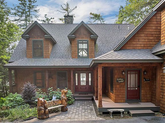 Welcome to 81 Timber Lane Road in Wolfeboro, NH—a true Lake Winnipesaukee retreat. This lakefront home is the perfect blend of comfort and craftsmanship, offering southwest views of the water and mountains with sunsets that put on a new show every night. This home spans three floors with thoughtful spaces throughout.The main floor features an open layout with a beautiful kitchen, living room with a floor-to-ceiling stone fireplace, and a first-floor primary suite with its own screened porch and deck access. The lakeside deck has glass panels for unobstructed views. Upstairs, two bedrooms each have private lake-facing decks. Over the 3-car garage is a spacious bonus suite with full bath and sitting area, and sleeps 10+. The walkout lower level is designed for fun with a custom bar, family/rec room, reclaimed barn board accents, 11ft ceilings, a two-sided fireplace, full bath, and an additional bedroom—a stones throw from the lake. Details include hardwood floors, exposed beams, fir doors, central air, state of the art mechanicals and epoxy garage floors. Even has a heated driveway! Outside, enjoy your own perched beach and deep-water docking, making the most of everything Winnipesaukee has to offer. The location is unbeatable—located on the south side of town just 1.5 miles to downtown Wolfeboro (you can even walk via sidewalk) to shops and restaurants, minutes to schools, golf, and the hospital, with easy access to the Seacoast and less than two hours to Boston.