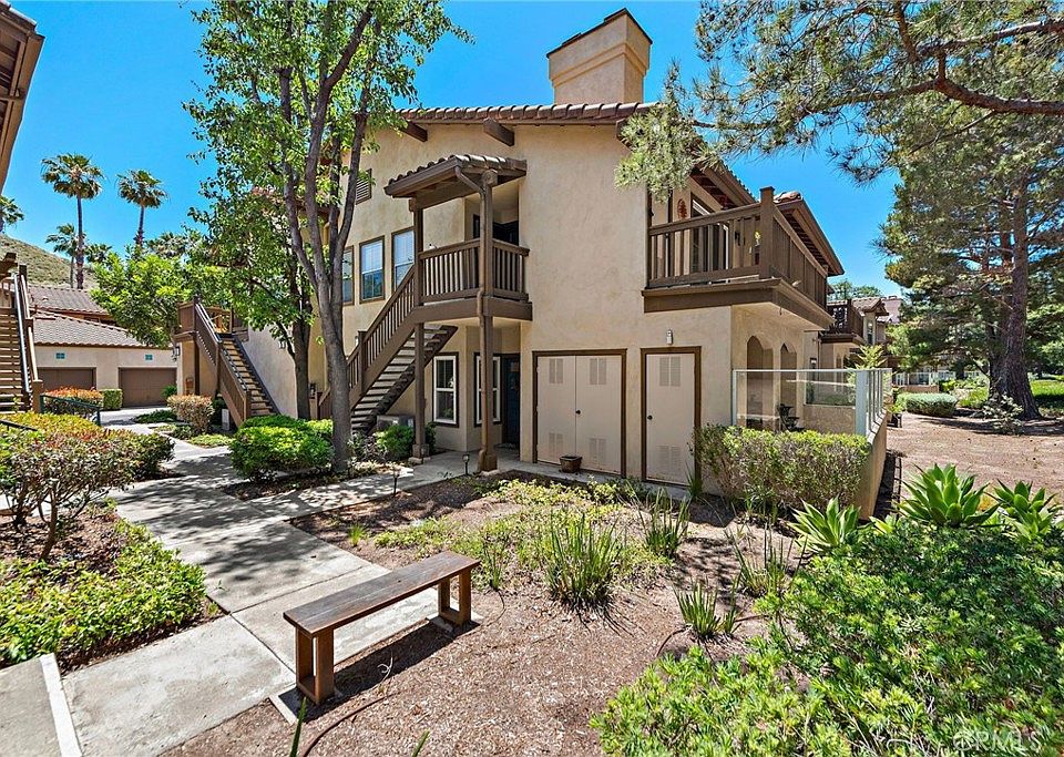 Welcome to your dream home in the heart of Rancho Santa Margarita! This beautifully appointed ground floor 2 bed/2 bath condo boasts quality upgrades and appliances, ensuring a modern and luxurious living experience. With a thoughtful floor plan designed for comfortable living, this corner-end unit offers both privacy and tranquility, backing onto lush outdoor space. Step inside to discover beautiful luxury vinyl plank (LVP) flooring throughout, warm and appealing paint selection and a comfortably shaded and cool space filled with natural light. The covered, private, and fenced-in outdoor patio provides a perfect retreat for relaxation or entertaining guests. The kitchen is a chef’s delight, featuring plentiful cabinetry, granite countertops, and stainless steel appliances. The open-concept space allows you to enjoy views of the living and dining areas, as well as the lush outdoor surroundings, all from the heart of the home. The spacious primary bedroom is a true sanctuary, offering an ensuite bath, ample natural light, and serene views of greenery from the window. The second bedroom is equally inviting, providing flexibility for guests, a home office, or additional living space. Convenience is key with an enclosed full-size stacked washer/dryer, a Whirlpool dishwasher, and an LG refrigerator included. The one-car attached garage provides direct interior access and offers abundant storage space. Meticulously maintained and move-in ready, this condo is perfect for those seeking a turn-key home in a vibrant community. Rancho Santa Margarita is highly sought after for its proximity to entertainment, shopping, and dining options, as well as easy access to toll roads and freeways. The community also offers an abundance of outdoor amenities for residents of all ages, including parks, playgrounds, multiple pools (some heated year-round), a beach club, tennis and pickleball courts, and sports parks. Don’t miss your chance to own this stunning, upgraded condo in one of the most desirable locations in Rancho Santa Margarita. Schedule your viewing today and experience the exceptional lifestyle that awaits you!