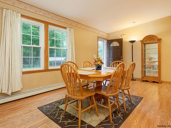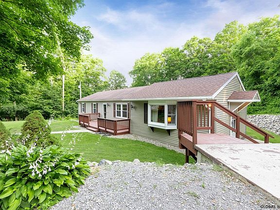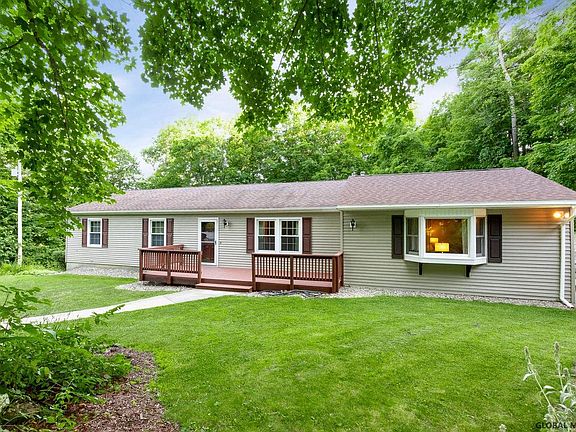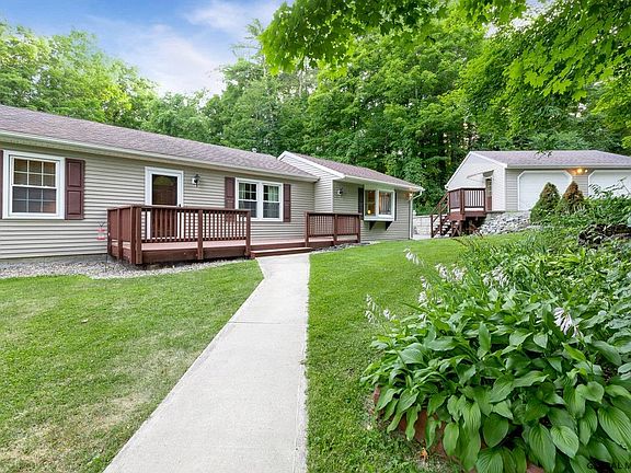 This welcoming ranch home situated on a beautiful, private 2.1 acre lot located on a lovely country road in RCS school district has so much to offer. This house features 5 bedrooms, 3 bathrooms, and a finished basement area with an exterior entrance. You'll fall in love with the spacious family room with cathedral ceilings and beautiful beams, laminate hardwood floors throughout, and the fantastic enclosed three season room overlooking the backyard. Don't miss your chance to call this home!