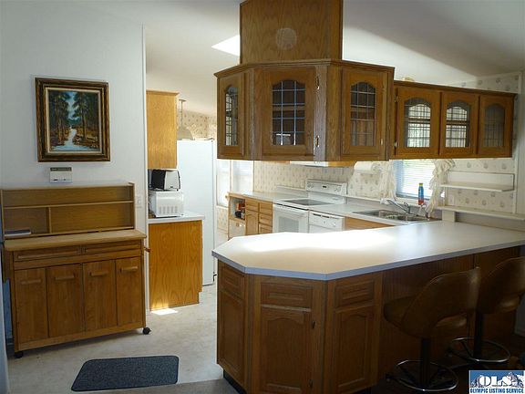 Double wide in great condition on 2 plus acres with 9 outbuilding. 2 enclosed buildings one with electric. Green house and many sheds. Paved driveway in a private location. One bedroom travel trailer stays on property. Inside there is a LR,DR, Eat in kitchen with nook,master with full bath and walk-in closet, den, 2nd bedroom, office. There is an irrigation ditch on property. Detached building installation in the walls, electric and heat . 2 car detached with tall doors. Furnished