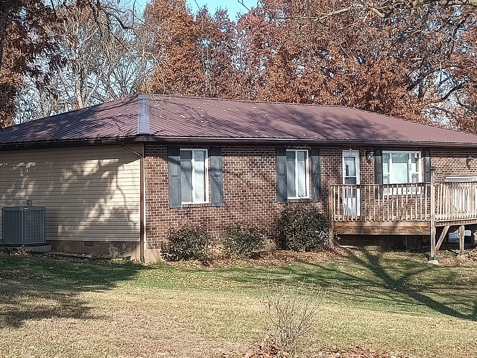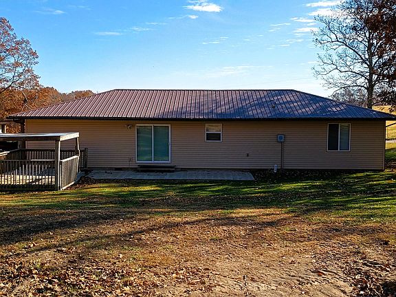 Looking for country living? This one level home sits on 1.7 m/l acre in Miller County located off Hwy 54 in the outskirts of Eldon about 5 minutes to town, 15 minutes to Lake of the Ozarks, 30 minutes to Jefferson City. Energy efficient brick vinyl exterior this 3 bedroom 1.5 bath home features newer updates in past couple years heat pump furnace central air conditioning includes 4 years warranty left for buyers. Attached one car finished garage plus a carport. 30 x 40 shop metal building with end to end drive through 10x12 sliding doors. Shed open and enclosed would make a nice chicken coop, seller says peach trees and red raspberry bushes rose bushes. Home on private well. Spacious yard with fire pit. Front large deck and covered backyard deck to enjoy the open views. Affordable taxes, County mainted road, School bus stops at home.
