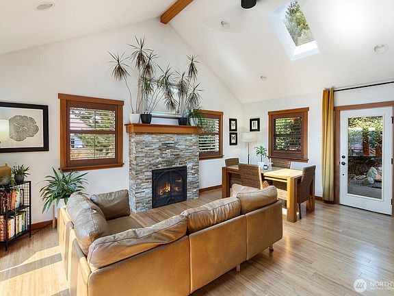 Beautiful Custom Craftsman home + additional buildable lot in sought after beachfront community with marina, clubhouse, indoor pool, fitness room, pickleball, workshop and more. This truly one-of-a-kind home has gorgeous woodwork throughout, a fully remodeled kitchen with quartz countertops (completed in 2020), radiant porcelain floors throughout lower level (remodel in 2016), new water heater in 2024, six big skylights on the main level, offering tons of natural light, marine cable railings, loft, custom built storage, private campfire area, large raised garden beds and a custom built outbuilding with trex-type flooring and cardecking lofted ceiling. There's even a waterfall and extra fully-fenced lot for your enjoyment or investment.