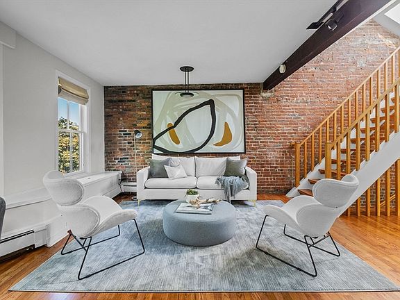 Wood-burning fpModern updatesNewer central acIn-unit laundryExposed brickHardwood floorsStylish carrara marble bathroom