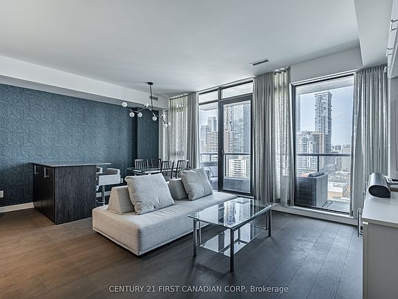 Welcome to unit 1405, this stunning 2-bedroom, 2-bathroom condo at 81 Wellesley, perfectly situated in the heart of downtown Toronto and 1 block from Wellesley subway station. Built in 2023, this sleek and contemporary building offers the perfect blend of luxury and comfort with amenities just steps from the front door, that make everyday life a little bit easier. Boasting over 1,100 sq. ft. of modern living space, this sleek unit features floor-to-ceiling windows that flood the space with natural light. Both bedrooms are generously sized, with views of the CN tower from the primary bedroom. The second bedroom has a high end custom made wall bed, for functionality and convenience with guests. The incredible kitchen is a true standout, with sleek, modern finishes, a custom built in island, upgraded modern appliances and ample counter space, perfect for preparing meals or entertaining guests. The open concept living space is designed to maximize both style and functionality. With access to the large balcony, overlooking the city skyline from the 14th floor. 81 Wellesley includes amazing amenities for residents, including a spacious high end fitness room, meeting space for guests and a spacious terrace to enjoy in the summer months. Located just steps from everything downtown Toronto has to offer world-class dining, shopping, entertainment, and easy access to public transit you'll have everything you need right at your doorstep. *This unit includes 1 owned parking space.