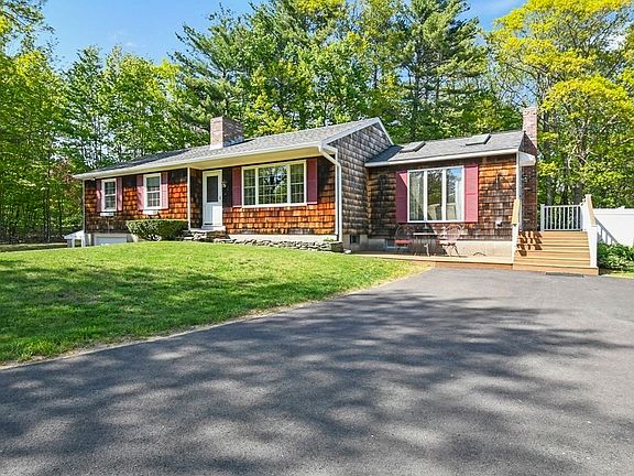 Welcome to this charming country house nestled on a spacious lot with picturesque barn, adding a touch of rustic beauty. Upon entering, the front door you are greeted by a cozy living room offering a beautiful stone fireplace. The kitchen supplies ample counter space and modern appliances. The primary suite boasts its own full bath and partially finished walk in closet. Four generously sized bedrooms with HW. Adjacent to the kitchen is a welcoming family room that serves as a gathering place for relaxation and entertainment filled with natural light, beamed ceiling with skylights and a door that opens up to a back patio. Another full bath completes this level. Descend to the lower level and discover a stylish and well-appointed bar area designed with entertaining in mind along with laundry rm. The exterior features an oasis for relaxation and outdoor enjoyment featuring an above ground pool with composite deck, a large patio and two stall horse barn with loft access. PLENTY of parking!