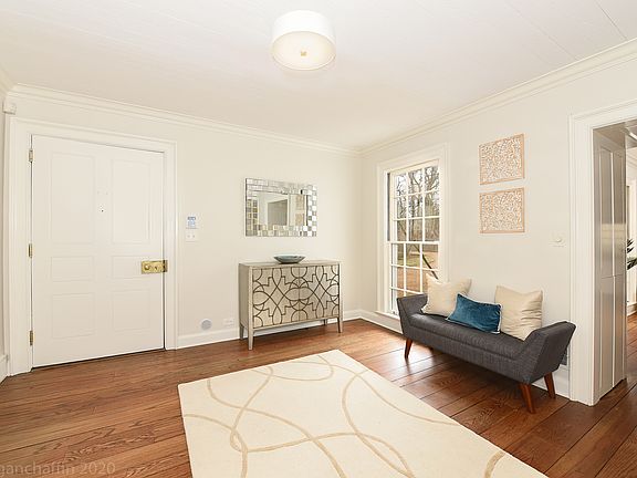 INCREDIBLE VALUE FOR THIS 2.2 ACRE COUNTRY ESTATE WITH POOL! Beautifully transformed, 5BR/6.3BA, one of a kind home delivering casual elegance equally suitable for quiet relaxation or lively entertaining. Spanning 5813 sq ft, this stylish home offers architectural details & designer touches throughout. Reclaimed wide-plank hardwood floors, rough-hewn beams, adorning cathedral ceilings, bead board wainscoting, fine millwork, colonial grid windows & 18th century fireplaces nod to bespoke craftsmanship. Stately features warm the sprawling living room, dining room w/ chic painted floors, great room & office w/ custom cabinetry, sprawling eat in kitchen filled with rows of cabinetry & all amenities in ideal locations. Unique & tranquil bedrooms suites are filled w/ custom wall & window coverings. Ideal screened in porch & indoor swimming pool w/ wet bar & spa secure this home's position as an entertainer's haven. Lush lawns, a canopy of tall trees & apple orchard complete this true sanctuary.