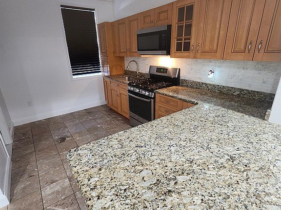 Beautifully updated kitchen, spacious to an open Livingroom area. The 3-bedroom also with its own closets. Apartment is newly renovated entirely, plumbing and electric. New floors and walls. Plenty of light throughout. laundry on the premises- plenty of washers n dryers in the basement. Perfect location for NYC commuters and/or other NJ areas. Come see it before is too l