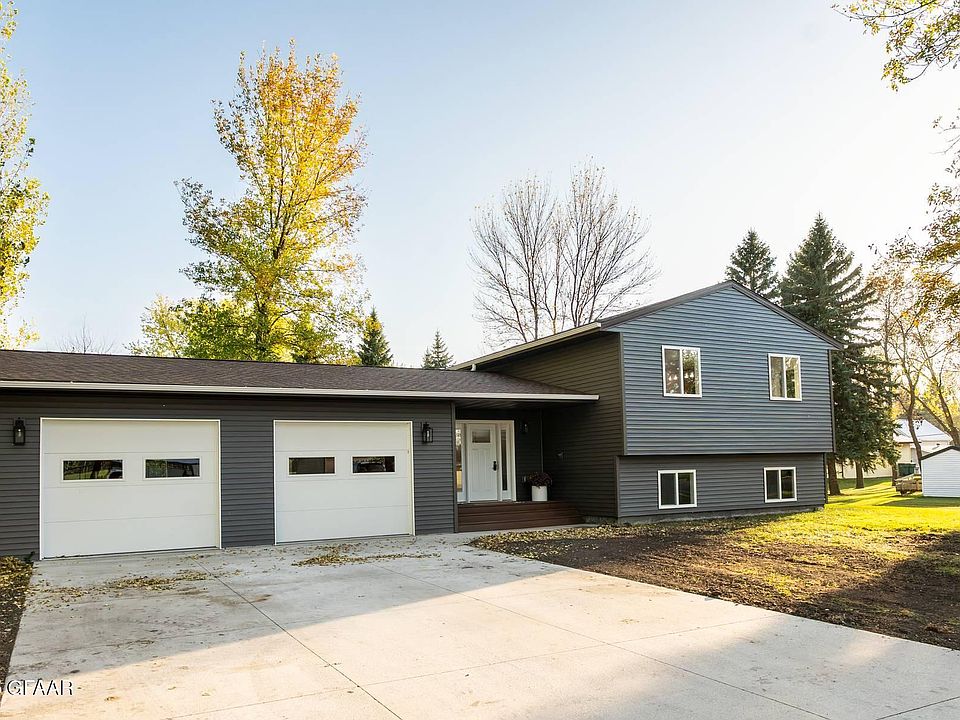 Step into this completely updated split-level home featuring 3 spacious bedrooms, a modern kitchen with quartz countertops, ample storage, and living space designed for comfort and function. Enjoy the large entryway that welcomes you into an open and inviting layout, ideal for both relaxing and entertaining. This home boasts a new HVAC system, shingles, downspouts, windows, and durable luxury vinyl flooring. The new attached 2 car garage is oversized and has a floor drain. The home sits on an expansive lot on the edge of town, perfect for enjoying outdoor living. This move in ready home is ready for you to call it your own!