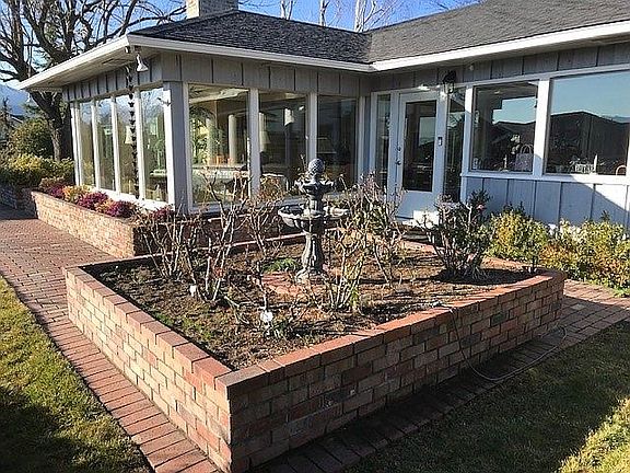 Classic ranch-style hilltop view home with additional separate 800 sf one-bedroom rental cottage with storeroom and carport. Main house is 2568 sf - 4 bedrooms, 3 baths, and an office – could be 3 bedroom/2 offices. All on level .53 acre lot. New kitchen with granite countertops, large island, walk-in pantry and stainless appliances. Split floor plan with 2 master suites, one with separate entrance, regularly rented as an Airbnb unit. Finished 600 sf basement with wine cellar. Flat hilltop lot with great views in every direction from Mt Ashland to the Table Rocks. Large patio with great sunset views. Extensive brick-lined hardscaping. Mature specimen trees, plus fruit trees - apple, cherry, pear, plum, nectarine, persimmon, and grape arbor plus five raised beds with automated irrigation. Extra-wide 2-car garage with shop area. Extra-wide level paved parking in front. Cottage rent is currently $1000/mo – well under market; tenant has been given 60-day notice, but would like to stay.