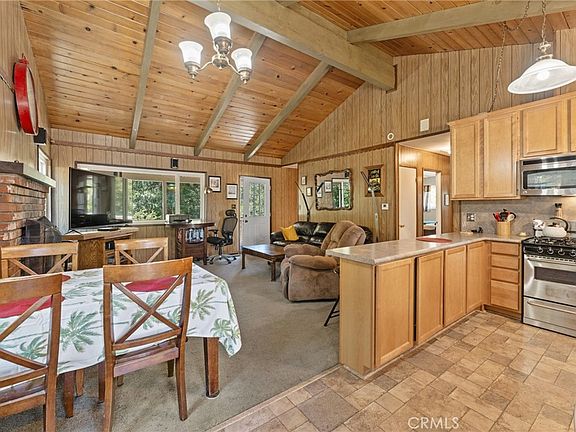 Nestled in the serene and picturesque mountain community of Crestline, this enchanting 4-bedroom, 2-bathroom home offers the perfect blend of comfort, tranquility, and modern convenience. Located just minutes from the pristine Lake Gregory Regional Park which provides beach access, fishing, kayaking, dog park, nature trail etc, and vibrant shopping center, you’ll enjoy the best of both worlds: a peaceful mountain lifestyle with easy access to local amenities. Step inside and be welcomed by a warm and inviting living room featuring a traditional brick fireplace, ideal for cozy evenings during chilly winter nights. The central heating ensures year-round comfort, while the spacious layout allows for relaxed living and easy entertaining. From the living room, large glass pane door leads to a private deck, providing stunning views of the surrounding forest of towering pine trees—perfect for outdoor gatherings or simply unwinding in the fresh mountain air. The lower level boasts a generously sized bedroom, which also opens onto a second deck. Wake up to the morning sun filtering through the trees and enjoy a peaceful moment in the heart of nature. This home offers an incredible opportunity for anyone seeking a mountain escape that doesn't sacrifice convenience. County snowplowing service during winter months for easy access to your driveway provides easy maintenance. Furnace with 8 year warranty and double pane windows provide peace do mind during the cold winter months. Whether you’re looking for a year-round residence or a weekend retreat, this property is a must-see. Don’t miss out on the chance to make this peaceful haven yours!