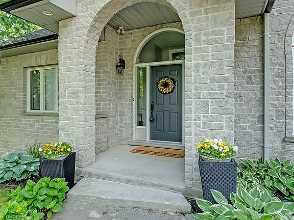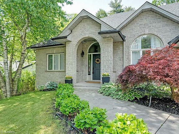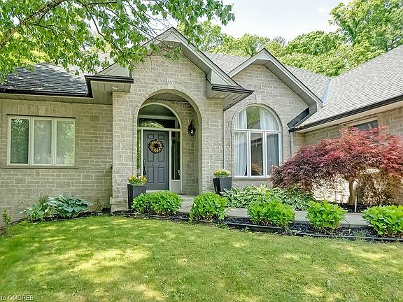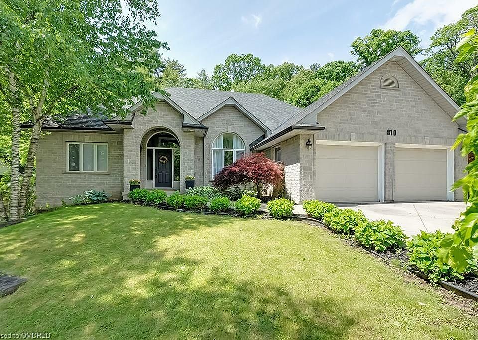Located on a quiet Cul-de-sac, steps from the lake, backing onto private lush ravine, nestled into private manicured grounds, this elegant 4 bed, 3 bath custom built stone bungalow features 10ft ceilings, open floor plan, and nearly 4,300ft2 of finished living space. Updated and painted in tasteful neutral décor throughout with hardwood, crown, pot lighting, new light fixtures and all new baths with solar powered skylights, one with radiant floor heating. The eat-in gourmet kitchen features a large island, soft close cabinetry punctuated by quartz Countertops, tile Backsplash with Wolf, Miele stainless steel appliance package. The Primary bedroom features custom fitted wardrobes and newly updated 5-piece ensuite with double vanity, glass surround shower and deep stand-alone soaker tub. Living room with gas fireplace & large palladium window overlooking the heated inground pool & ravine. Separate dining room with crown molding & 9-point chandelier, Family room with custom built-in cabinetry & French doors, 2nd main floor bedroom, 3-piece bath and Laundry with garage access complete the main level. The finished Lower Level features a large open Rec Room, Games & Exercise areas, two additional bedrooms, 3-piece bath and 3 storage rooms. Private, fully fenced yard raised deck with new powered awning, Central Vacuum, Central Air, irrigation completes this wonderful home. Ideally located near the Burlington Golf & Country Club, Bayside biking and walking trails & Lasalle Park & Marina.