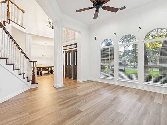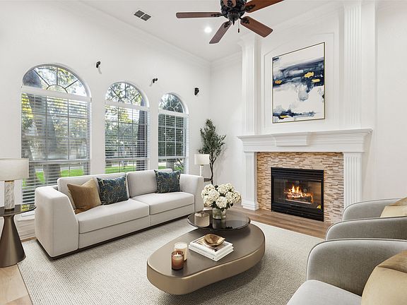 Experience timeless elegance and refined comfort in this beautifully maintained residence nestled in the highly sought-after South Ridge Lakes community. Perfectly positioned on nearly half an acre, this exquisite 4-bedroom home offers the ultimate Southlake lifestyle within the award-winning Carroll ISD. From the moment you step through the grand entry with its soaring ceilings, you’re greeted by a formal living room anchored by a warm fireplace and framed by three sets of double windows that flood the space with natural light. The heart of the home is the expansive open-concept family room, kitchen, and breakfast area, a seamless space designed for entertaining. The family room showcases a striking floor-to-ceiling stone fireplace, while the chef’s kitchen impresses with dual islands, one ideal for prep, the other a wraparound bar perfect for gatherings. Enjoy top-tier stainless steel appliances, double ovens, an electric cooktop, and abundant cabinetry for effortless culinary experiences. Retreat to the luxurious primary suite, featuring a serene sitting area with bay windows and a spa-inspired ensuite bath with dual vanities, a jetted soaking tub, separate shower, and a massive walk-in closet. A secondary downstairs bedroom provides flexibility for guests or multigenerational living. Upstairs, the spacious game room with a built-in wet bar and a private balcony overlooking the backyard sets the stage for entertaining, while two additional bedrooms offer comfort and privacy for family or guests. Step outside to your personal oasis, an expansive backyard featuring a sparkling fenced pool, lush landscaping, mature trees, and a full outdoor living center complete with a built-in grill. Whether hosting summer soirées or enjoying quiet evenings poolside, this outdoor retreat is designed for relaxation and connection.