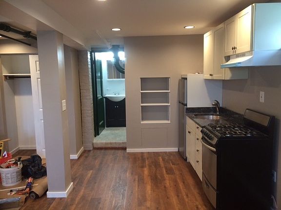 Totally renovated studio apartment in convenient location. Includes 1 off street parking spot. All new bathroom, kitchen, floors walls and fixtures. Rent includes, heat, hot water, electricity, water and sewage and trash removal.