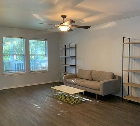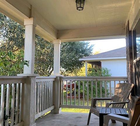 The house has sleek flooring throughout the house - no carpet! Updated bathroom vanities and lighting are current and modern. Recently purchased appliances (oven, fridge, dishwasher, washer/dryer) in great condition. Great outdoor space with covered patio in the back with a new fence and plenty of room for entertaining and gardening. The front patio has covered and protected from the sun, great for sipping morning coffee under the oak trees. There's also an attached 2-car garage. Finally, this is the last house on the block, so you only have one neighbor.