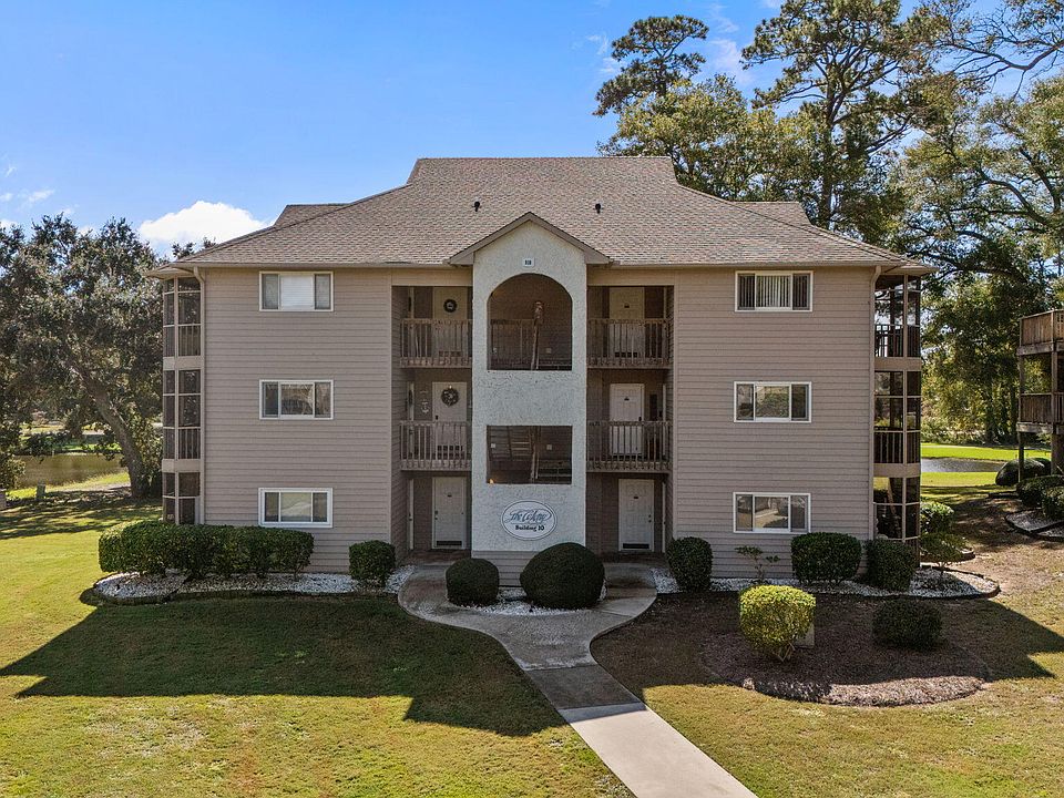 Welcome to this top-floor condo in the desirable Oyster Bay community, where coastal charm meets resort-style living. This 3rd-floor end unit offers spectacular panoramic views of the golf course and tranquil pond from its spacious wrap-around deck—perfect for relaxing or entertaining. Inside, you'll find a bright, open floor plan with vaulted ceilings and attractive LVP flooring throughout. The kitchen features stainless steel appliances, bar seating, a breakfast nook, and a pantry, while the living room is framed by triple sliding glass doors on two walls that fill the space with natural light and open to the deck for seamless indoor-outdoor living. The primary suite can serve as a private lock-out unit—complete with sliding doors to a screened-in deck, an ensuite bath, and stylish barn doors on the closet—making it an ideal option for rental income or guest privacy. A second bedroom with a walk-in closet, another full bath, and a convenient laundry/utility room complete this well-designed condo. Enjoy the community's amenities, including a swimming pool, tennis and pickleball courts, or head just minutes away to Sunset Beach for a day of island fun, fishing, or explore the area's many renowned golf courses.