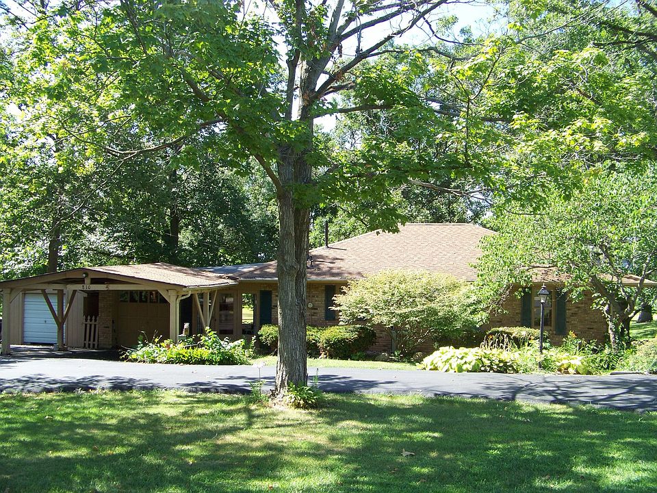 Charming Brick Ranch on the commons in beautiful Stoddard Acres. This home features knotty pine, hardwood floors and black iron hardware through out. Access the enclosed breezeway from the covered front patio. The one car attached garage is off the breezeway. From the Breezeway you can also access the back deck and kitchen. There is also a nice 2 car detached garage and a garden shed for lots of storage. Beautiful mature trees and lovely landscaping surround this amazing property. You'll enjoy great views all year long from the large living, dining room combo that has a wood burning stove. The kitchen with nice SS appliances features knotty pine cabinets, newer countertops, with a snack bar & Dutch door that opens into the living room Washer and Dryer in the large laundry room also stay. This is truly a one of a kind property with lots of beautiful woodwork and phenomenal views.