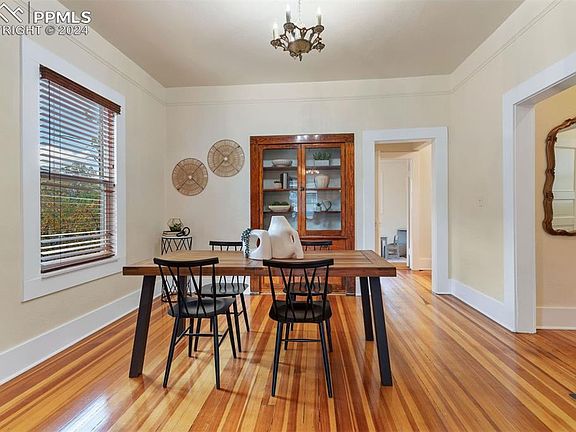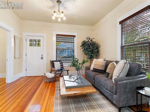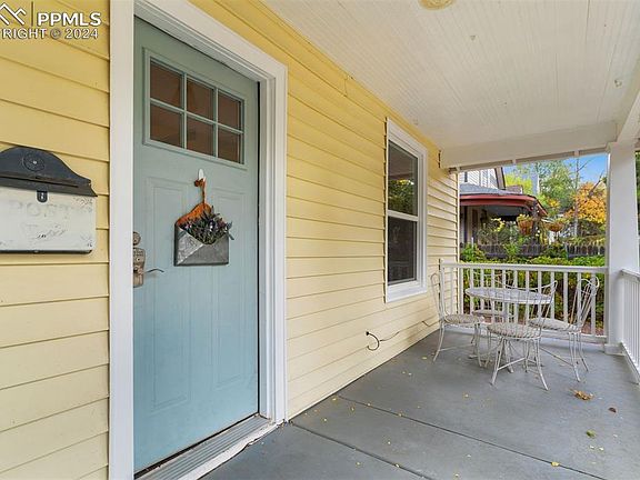 Charming Bungalow in Downtown Colorado Springs. Step into this delightful & sunny 2-bedroom, 1-bath bungalow built in 1910, brimming with character and original features. Located just minutes from downtown Colorado Springs, this home offers a perfect blend of vintage charm and modern convenience. As you enter, you’ll be greeted by freshly refinished original Fir hardwood floors and 9 foot ceilings that create an airy atmosphere. The living area showcases a built-in china cabinet and period light fixtures, adding to the home's timeless appeal. The kitchen is updated with white cabinetry and granite countertops. Retreat to the serene bedrooms, where natural light pours in, providing a tranquil escape. The bathroom features a classic clawfoot tub and hex tiled floor. Enjoy sunsets from your inviting covered front porch, a wonderful spot for morning coffee or evening relaxation. Fresh interior paint allows you to move in and unpack. The property is zoned R-2, allowing for the possibility of building an accessory dwelling unit (ADU) to accommodate guests or generate rental income. Additional features include a detached one-car garage, back concrete patio pre-wired for a hot tub and easy access to I-25, making commuting a breeze. Don’t miss your chance to own this enchanting piece of history in a vibrant neighborhood! Schedule a showing today!