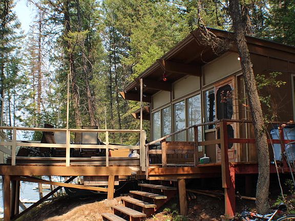 Echo Lake eastshore waterfront cabin 100' of gravel beach. Cleared level site ready to build your home and walk down to cabin at water's edge.Cabin has big deck for outside seating.Cozy feeling 2 bdrm/1 ba ,laundry and bathroom.Nicely wooded offers shade to west facing - watch the sunsets. Great watersport, fishing lake just minutes from Bigfork and the Jewel Basin Hiking Area.