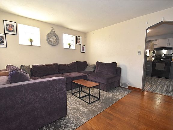 A covered front porch welcomes you to 810 Glencairn in convenient West Mifflin. Enter into a nice sized living room with gleaming hardwood floors and plaster walls. An arched doorway leads to the cheerful kitchen with a gas stove, side by side refrigerator and two-tone cabinetry with coordinating backsplash and plenty of storage. Both bedrooms feature hardwood flooring and two windows. The sparkling ceramic bath has a new vanity and a shower/tub combo. The finished basement provides additional living area, includes a second full bath with walk-in shower and has sliding doors to the deep backyard. This generous yard extends beyond the two car garage. There is a full attic thru master bedroom closet. Newer Furnace and hot water tank. Metal Roof. GREAT starter home or scaling down. Close to elementary ,middle school High school , transportation and the waterfront for ,nice shops, restaurant and movie theater GREAT Location