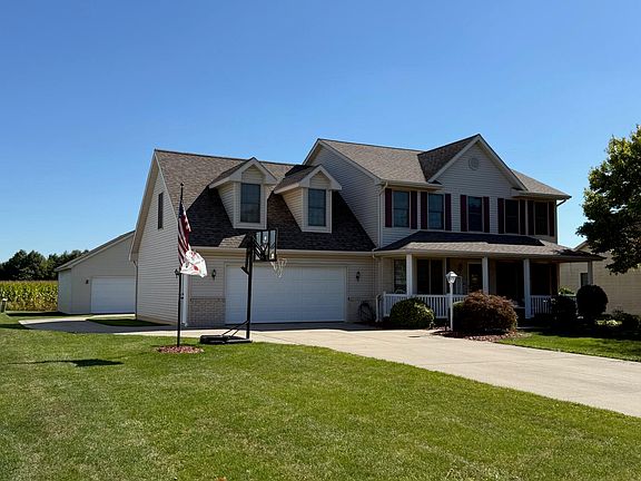 Beautiful Delta home tucked away on a cul-de-sac in the coveted Panther Estates. This home offers: hardwood floors, updated light fixtures, 1st floor laundry, kitchen w/ quartz countertops, lots of cabinetry & large island. Three bedrooms, walk-in closets, 2.5 bathrooms & eat-in kitchen. Abundance of space with a huge bonus room (could be another bedroom) & partially finished basement. Enjoy evenings on the porch watching the sunset or hangout on the patio overlooking the field (no rear neighbors). Beautiful landscape w/ fresh mulch added this year. Concrete drive (2011) accesses 24x30 2+ car garage & second detached garage/workshop built in 2006. Previous listing: roof 2018, AC 2015, furnace 2021, water heater 2013. Home is located close to park and schools. Must See!