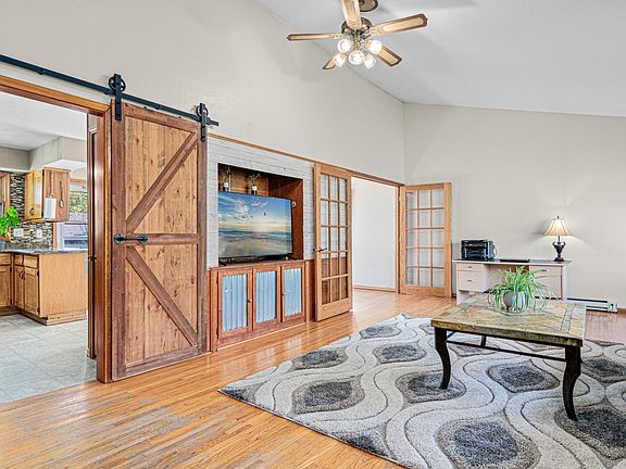 This impressive 3-bedroom, 2-bath home offers exceptional garage space featuring a heated and air-conditioned attached garage plus a heated 16x24 outbuilding, ideal for hobbies, projects, or extra storage. Nestled on a spacious corner lot with a fully fenced backyard, it’s perfect for pets, play, and outdoor gatherings. Inside, you’ll find light-filled living spaces and stylish details throughout. The bright living room showcases beautiful hardwood floors, vaulted ceilings, and a sliding barn door that adds character and warmth. The updated kitchen flows seamlessly into the walk-out dining area, making everyday living effortless. All three bedrooms are conveniently located upstairs, while the finished walkout basement expands your living options with a cozy family room and wood-burning fireplace. Conveniently located near the highway with quick access to Hudson, this home offers the feel of peaceful country living with all the conveniences of city life just minutes away. Come see for yourself, you’ll feel right at home!