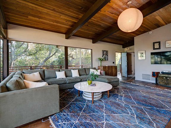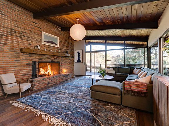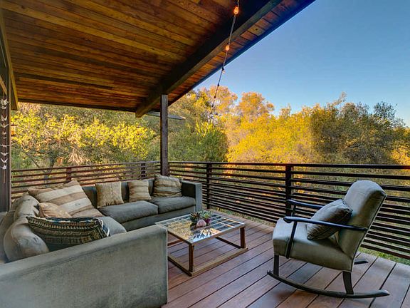 Your Ojai Dream home awaits you! Classic and stylish Mid Century vibe home built amongst the oaks and natural boulders. This 2 bedroom 2 bath home features vaulted redwood ceilings, gorgeous wood floors, a massive brick fireplace which serves as the centerpiece of the home, and custom cabinetry throughout. A wrap around Ipe wood deck looks out to the surrounding oaks and mountains. Downstairs you will find a newly built studio and additional bedroom/bath space with large iron and glass doors. Private and peaceful with a seasonal creek, this property on nearly 3/4 acre affords you countless opportunities to roam and unwind. No expense was spared on this remodeled close to town home.