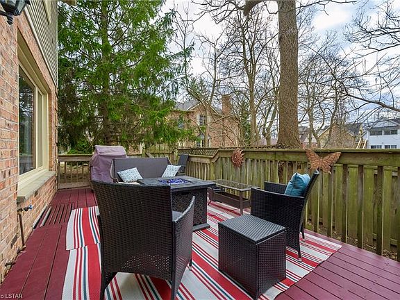 MAGNIFICENT MAITLAND! Welcome to 30-810 Maitland in the heart of Old North. Walking distance to downtown, Harris Park, Richmond Row, shopping and night life, yet tucked away in a private enclave surrounded by mature trees and peaceful serenity. Close to UWO, Hospitals and schools. SENSATIONAL END UNIT offers additional windows and space with soaring ceilings, Hardwood throughout main floor. Main floor features lovely floor plan with crown moulding and including, powder room, office, den, custom dry bar / wine fridge, living room, dining room that opens to open-concept kitchen with walk out to private deck, with natural gas line for BBQ, and flanked by mature trees. Beautiful. Second floor opens to two, full bathrooms (ensuite & 4 pc), three sunlit bedrooms including spacious master with updated master ensuite with glossy hard surfaces. Lower level features fully finished family room, gym, bonus room, and 4pc bathroom. All new windows. PRIVATE SINGLE GARAGE & DRIVEWAY. Security system (not monitored), new garage door opener. Beautiful home in a very desirable old North.
