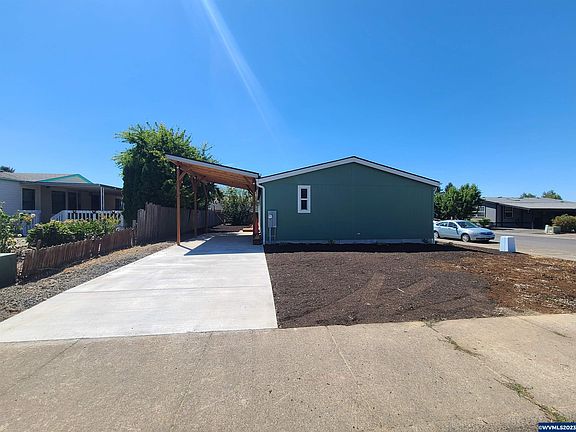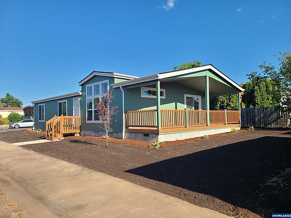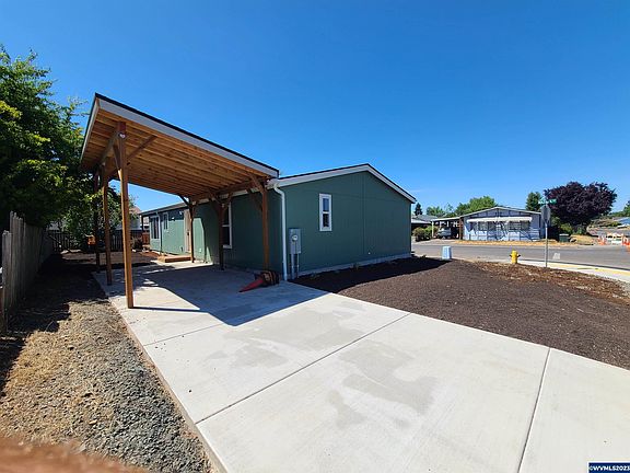Sitting on a corner lot, is this brand new manufactured home, 2 bedrooms with an additional office/den,2 full baths & primary with double sinks, 1,333 square feet in all. Tall ceilings and a kitchen skylight bring lots of natural light into this home. With a spacious covered deck off of the living room, surely a nice spot to entertain or enjoy your morning, and a tall custom carport. Space for private yard/ garden & freshly seeded lawn. This home owns the land, it is not in park. Buyer to do due diligence.
