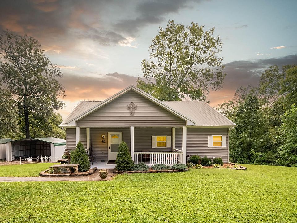 COUNTRY HOME NEAR SPRING RIVER Turn key ready to move into, approximately 1440 sq. Ft., living area, features Living, Dining & Kitchen all one great room. Electric Fireplace, outstanding full wood cabinets with island bar with storage draws. All appliances, dishwasher, electric stove & refrigerator. Currently 2-bedrooms, plus office that can be a bedroom, nice covered back porch over looking back yard and distant hills. 10x16 unfinished basement area outside entrance. All electric home, for heat and air. 2-carport & storage building. Quite setting on a short driveway just off the main road for privacy. Just a short drive to public access to Spring River. Better look quick @ $199,000