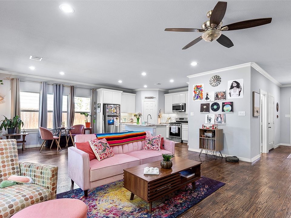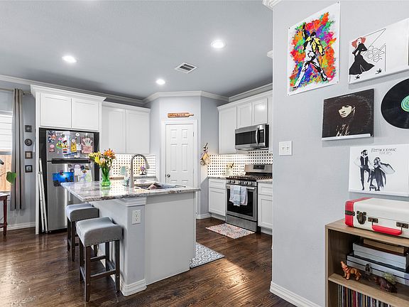 Newer home in established neighborhood so you get the charm of the mature trees and larger lot with the confidence of a newly built home. Walk in to open floor plan, hand scraped hardwood floors, a gorgeous white kitchen with solid counters and an island plus tons of windows that view into the pecan tree shaded yard and enormous storage building in back. This home's second and third bedrooms are ample sized and the plenty of space in the bathrooms too. Location is a dream since you could be at CJ's coffee in under 3 minutes, downtown for the farmers market in less than 5, and 1 minute to hwy 75 if you're commuting for work. Don't miss this one!