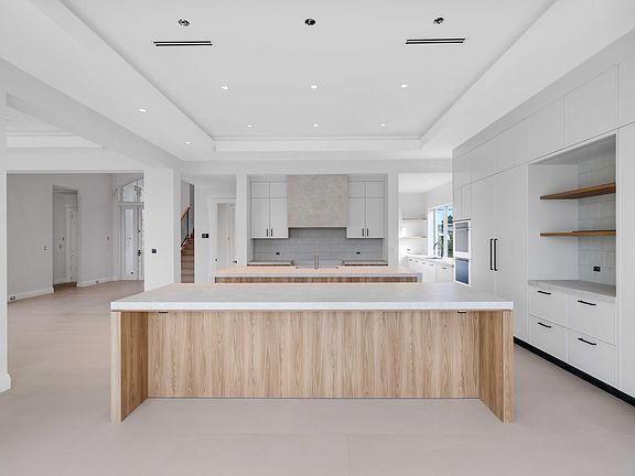 Outside, the estate offers 80 feet of deep-water frontage with no fixed bridges, providing effortless access to the open water. The dock, installed in 2022, complements a resort-style pool, fully equipped outdoor kitchen, and expansive sun deck perfect for sophisticated entertaining or enjoying serene sunset vistas. Additional features include a three-car garage, engineered oak flooring on the second level, large-format porcelain tile on the first, and bespoke designer lighting that elevates the home's refined ambiance.