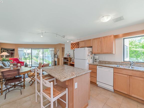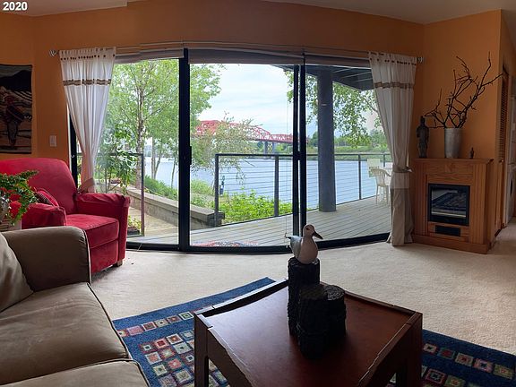 Highly sought after corner unit w/ river views from every room! Living room, bedroom and kitchen. Oversized deck. Very rare kitchen island. On-site pool/hot tub, restaurant, easement to the Pearl District and grocery store. 15 mile riverfront walkway. Fire pits and gas grills in courtyards. Short walk to the Pearl District, light rail & street car. Easy commute to the airport. Will make a great Vacation Rental or Air B&B $2500-$3000 Monthly rent w/ 30 day Min. Buy today and enjoy your summer
