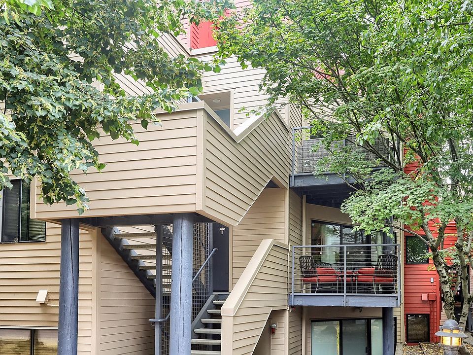 Swimming pool season is here! Check out the newly redone pool and spa. Waterfront living! Top floor, tastefully updated, south facing condo in a townhouse-style just steps to the river (soon to be gated!)community, with 24hr on site security. Open layout with a deck balcony right off of the great-room that is very private in the summer. Many updates throughout such as lush carpet upstairs, manufactured wood floors on the main. Stainless steel appliances and workspace under the stairs. Exterior was just painted. Pool, hot-tub, fire pit, and covered deeded parking. In unit stackable washer and dryer included. Pets ok and there is no rental cap (confirm with HOA).