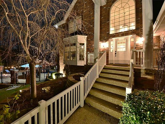 Your New Private Wooded Retreat Awaits! This impressive 4 bed/3.5 bath brick-front 2-story residence boasts an inviting open floorplan. You'll be greeted with a soaring 2-story entry foyer that flows naturally into the spacious living room & adjacent dining room w/ a marble surrounded fireplace , sunny bay window & butler pantry that flows naturally into the huge eat-in kitchen & adjacent breakfast room where you'll find ample 42in custom cabinetry, large center island w/ downdraft gas cooktop, gleaming granite counters/breakfast bar, stainless appliances, vaulted ceiling w/skylights & sliders to the composite deck w/ pergola + an adjacent flagstone patio. Private den w/ French double doors. Oversized master suite w/ cathedral ceiling, his & hers closets & a luxurious private bath. Expansive finished LL adds a huge family room w/ recessed wetbar + a full bath & Safe Room. Entertain in your private oasis featuring a massive patio, hot tub & inground pool. Huge 3-car finished garage too!