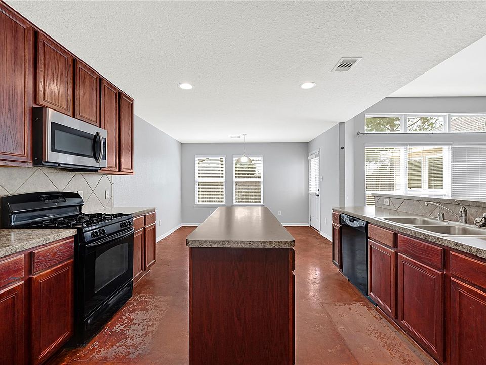 Gas log fireplaceHigh ceilingsHuge living spaceOpen kitchenFormal dining spaceLarge bathFenced backyard
