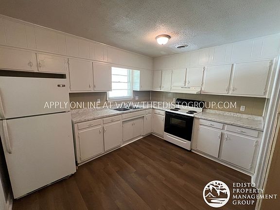 This charming one-story apartment features a practical two-bedroom, one-bathroom layout, ideal for comfortable living. Enjoy the convenience of a dedicated concrete parking area. The spacious kitchen comes equipped with a stove and refrigerator, offering plenty of room for meal prep and storage. The laundry room includes washer and dryer hookups for added convenience. Situated in a prime Orangeburg location, this unit is just minutes away from the picturesque rose gardens and provides easy access to local amenities.