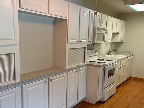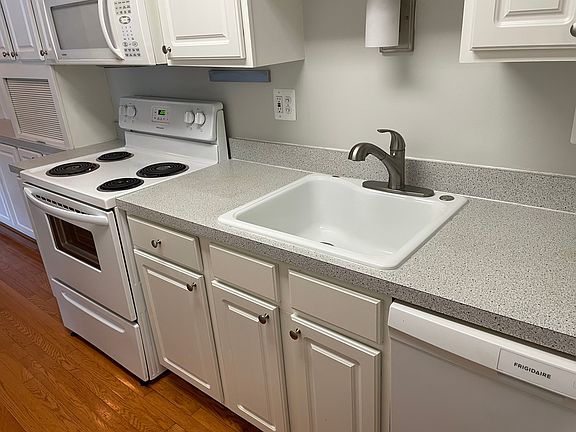 First floor unit with the assigned parking space close to the front door of main building. The unit is extremely clean with plenty of unique features. Freshly painted home with built in upgrades of custom cabinets in kitchen/dining area and shelves flanking the large picture window in the living room. All kitchen appliances and window air conditioner. Building hallways/stairs/entry door newly remolded with paint carpet and new exterior door.