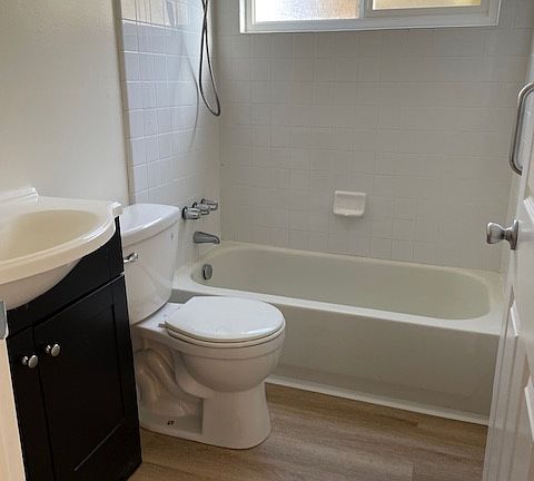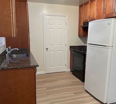 Ground floor unit in QUIET 6 plex. Freshly painted interior with new flooring & blinds throughout. Dual pane windows. gas wall heater. Electric stove, refrigerator & dishwasher plus large pantry or storage in kitchen. Dining area. Single stall carport parking plus storage unit. Front & rear access. Coin-op laundry room on site. Private garden/patio area for tenant use. NO PETS - NON SMOKERS