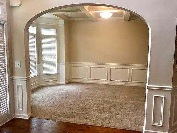 Move-in ready! 5 Bds 3.5 Ba on 0.37 ac. with huge fenced backyard. Screened back porch. Freshly painted walls and trim, including garage. Open plan with beautiful arched doorways on main floor. Hardwood flooring in entry and kitchen. Formal dining room with coffered ceiling. Great room with coffered ceiling and stone fireplace. Kitchen w/stained cabinets, granite counters, natural stone tile back splash, island and breakfast bar and huge breakfast area. Owner's bedroom on main floor with Trey ceiling/fan. Owners bath with separate vanites, garden tub and separate shower, linen closet and separate water closet. 18 x 18 ft loft area upstairs perfect for a media room. Remaining bedrooms include two with Jack n Jill bath. Lots of great storage. Double garage. Large fenced in backyard.